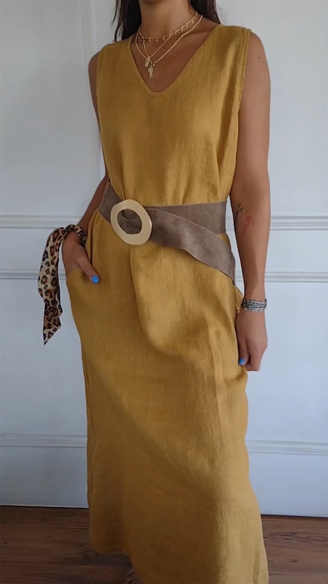 V-neck Belted Waist Dress
