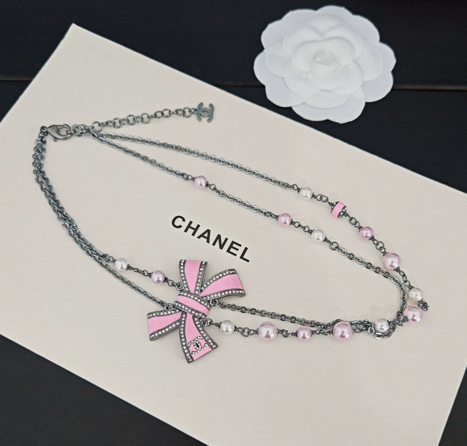 Double layered bow necklace