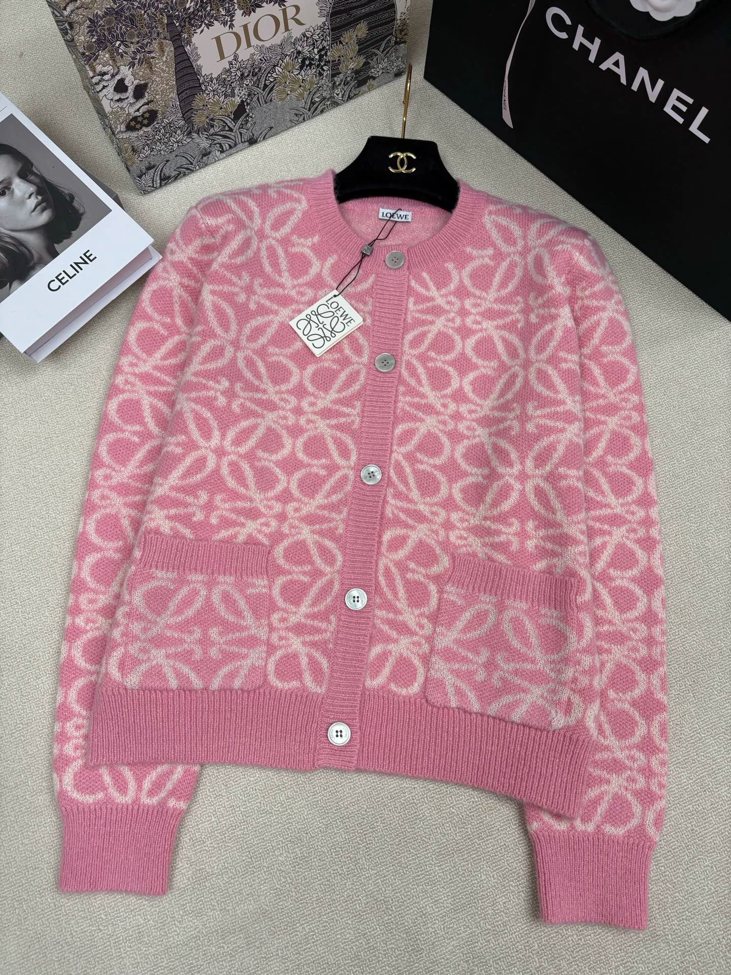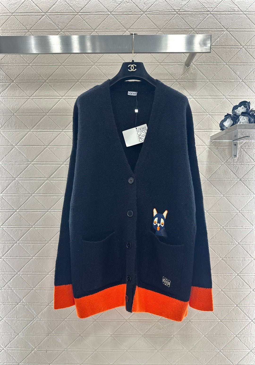 Color-blocked logo jacquard cardigan