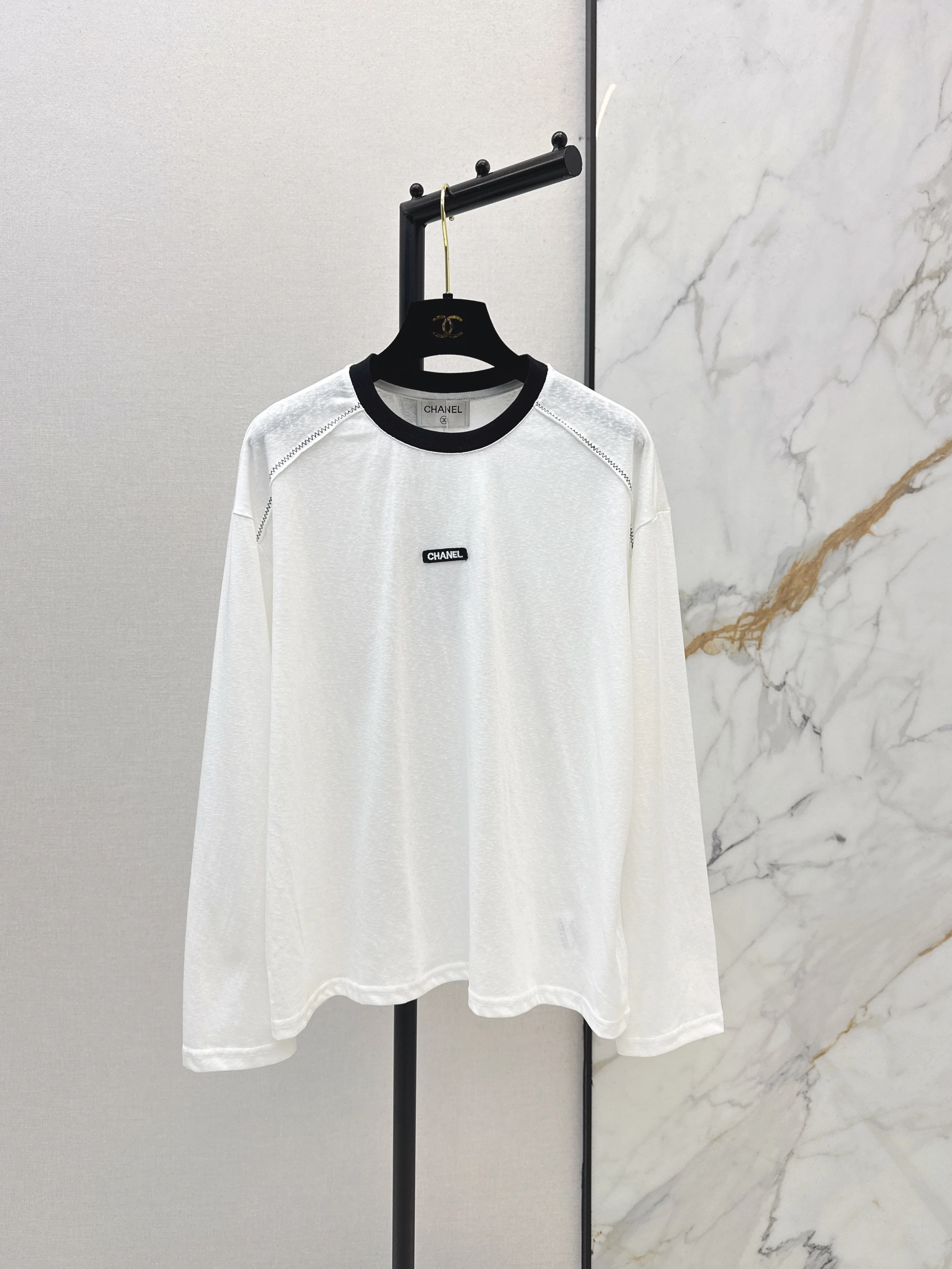 Crew neck long-sleeved top