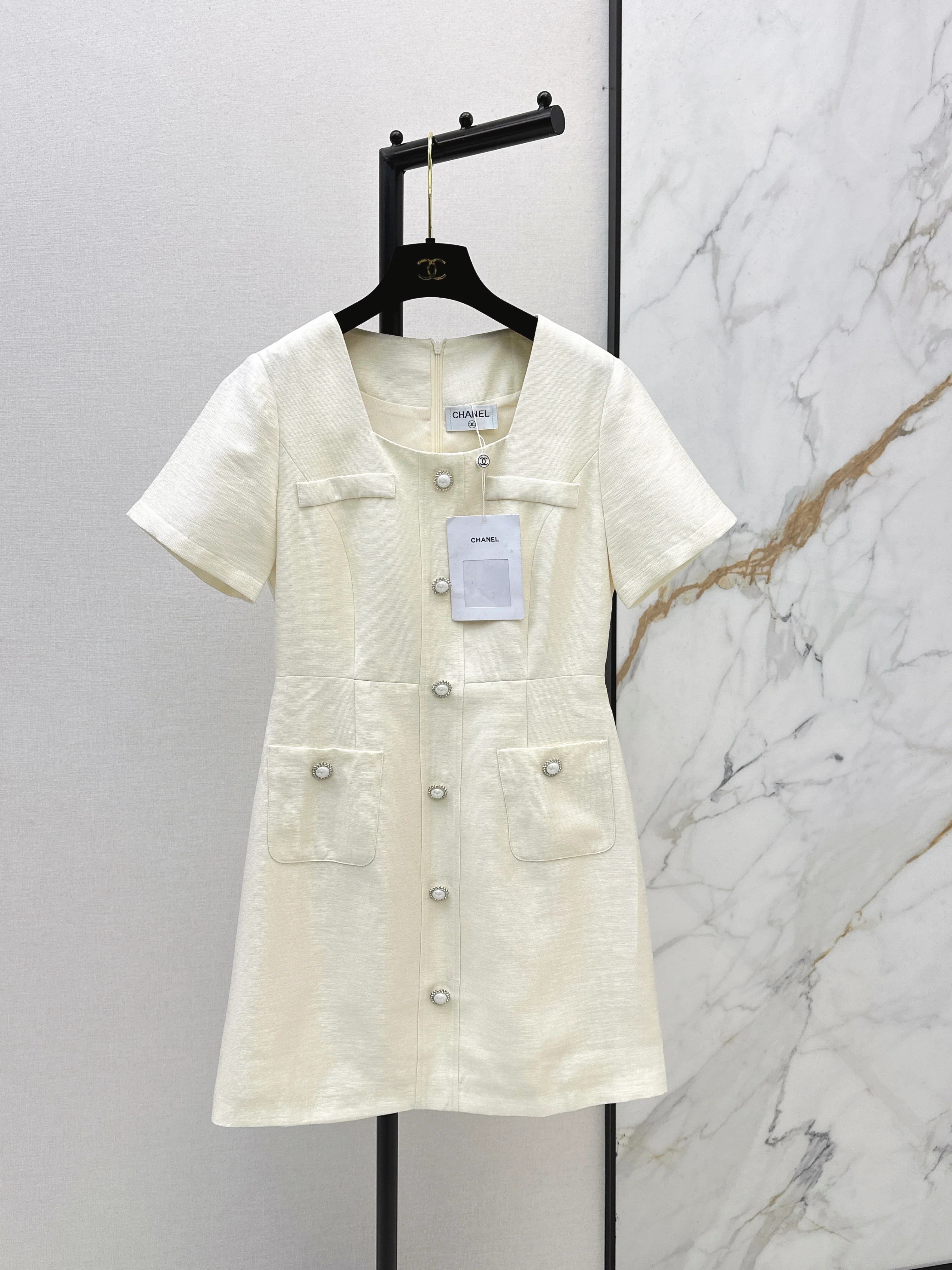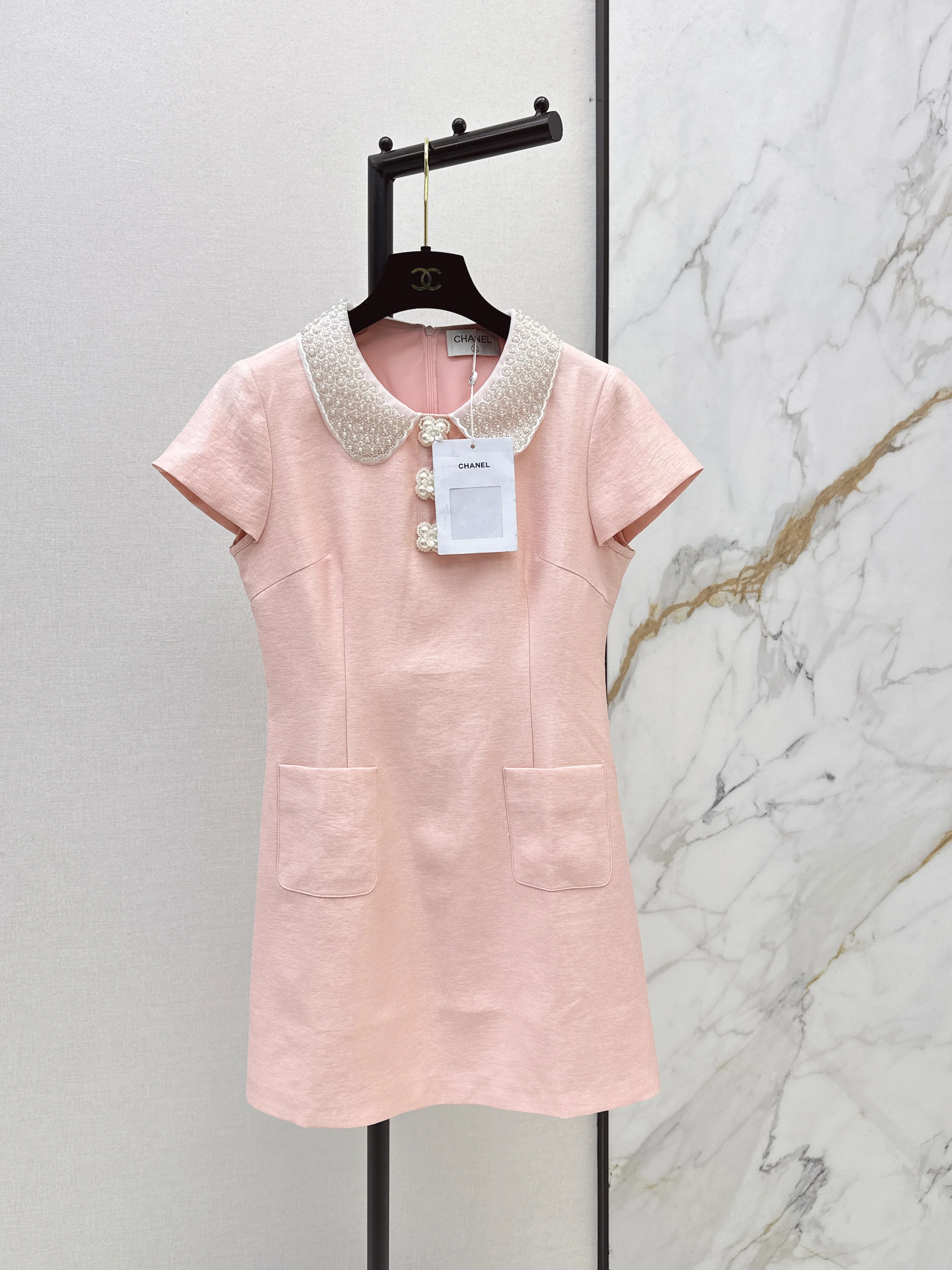 Double-pocket embroidered dress