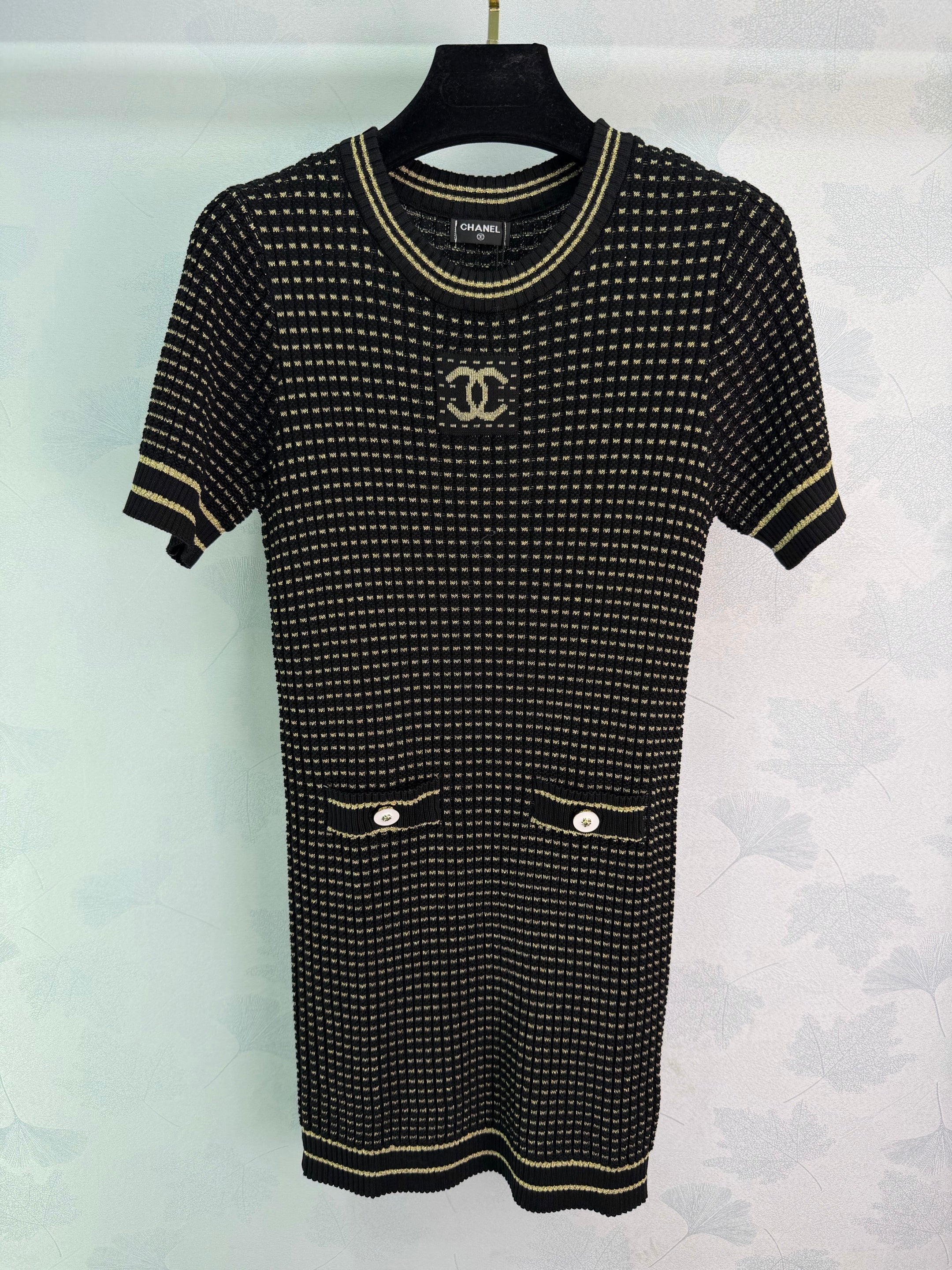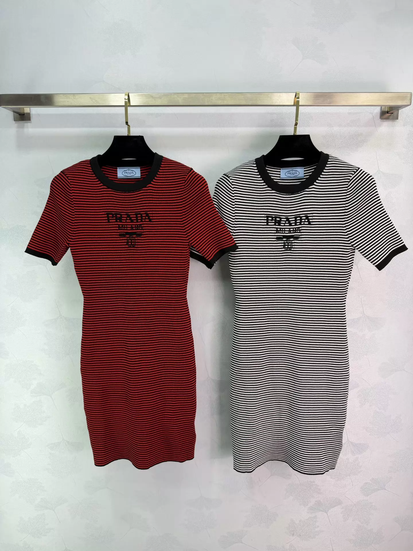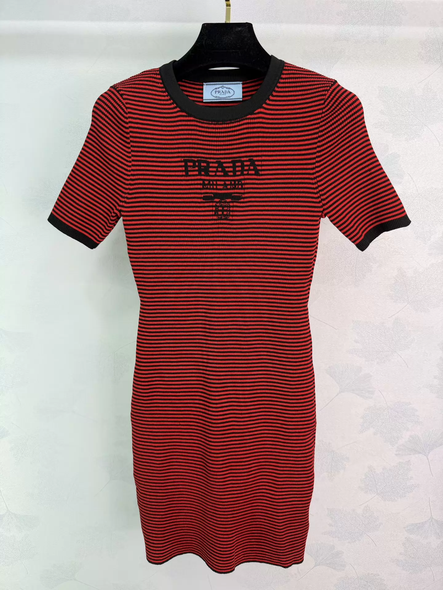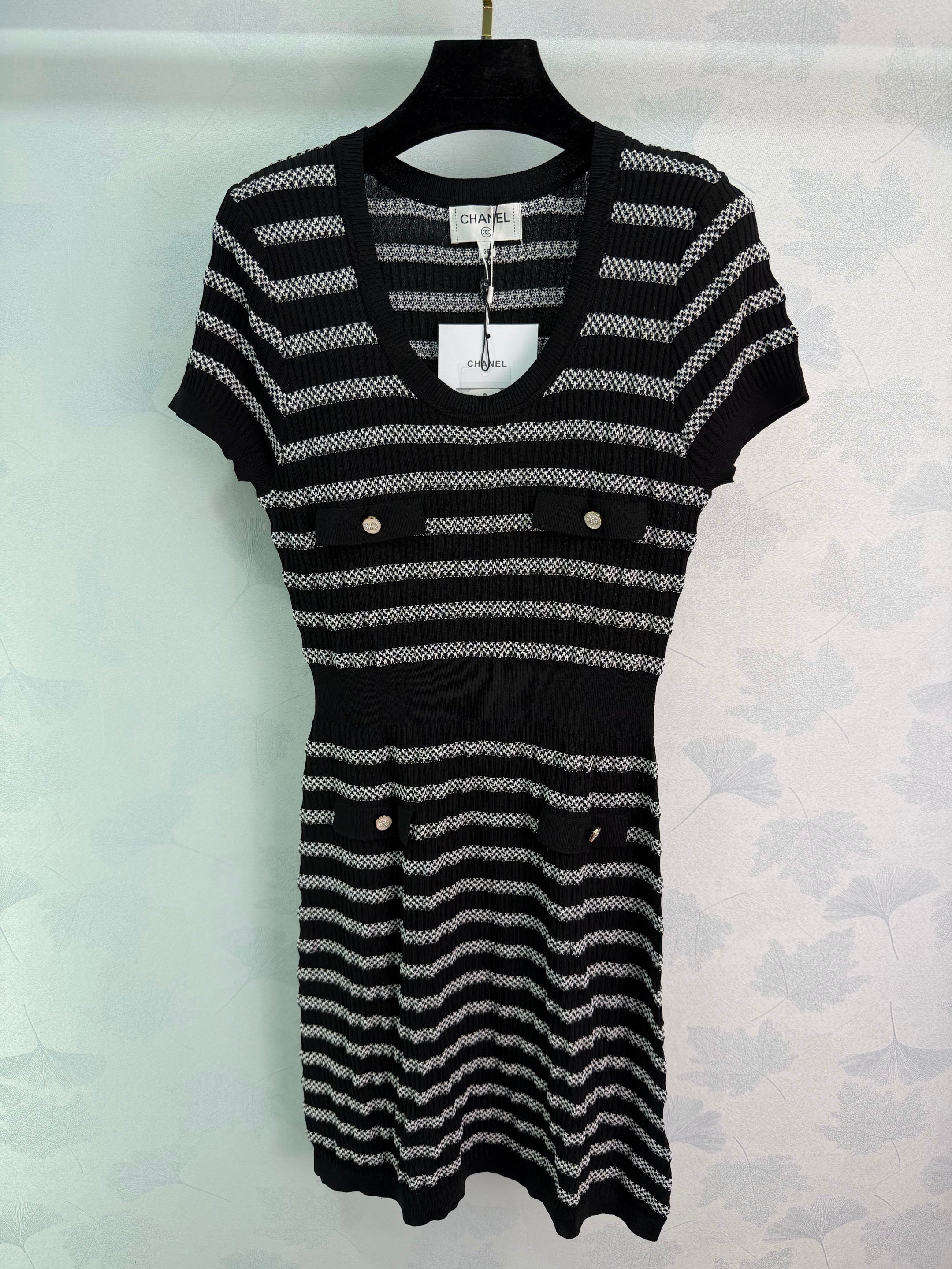 Striped knit short-sleeved dress