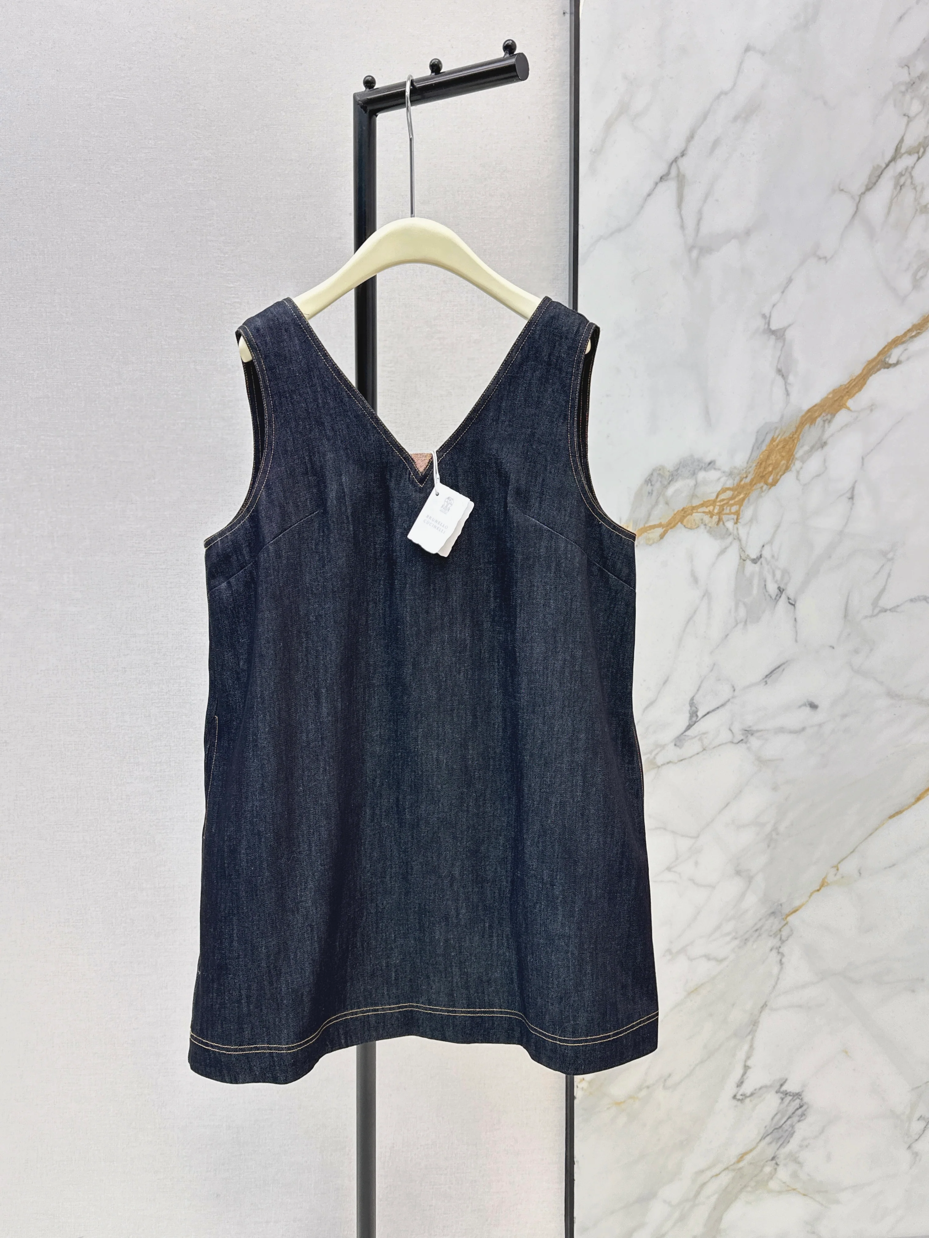 V-neck denim vest dress