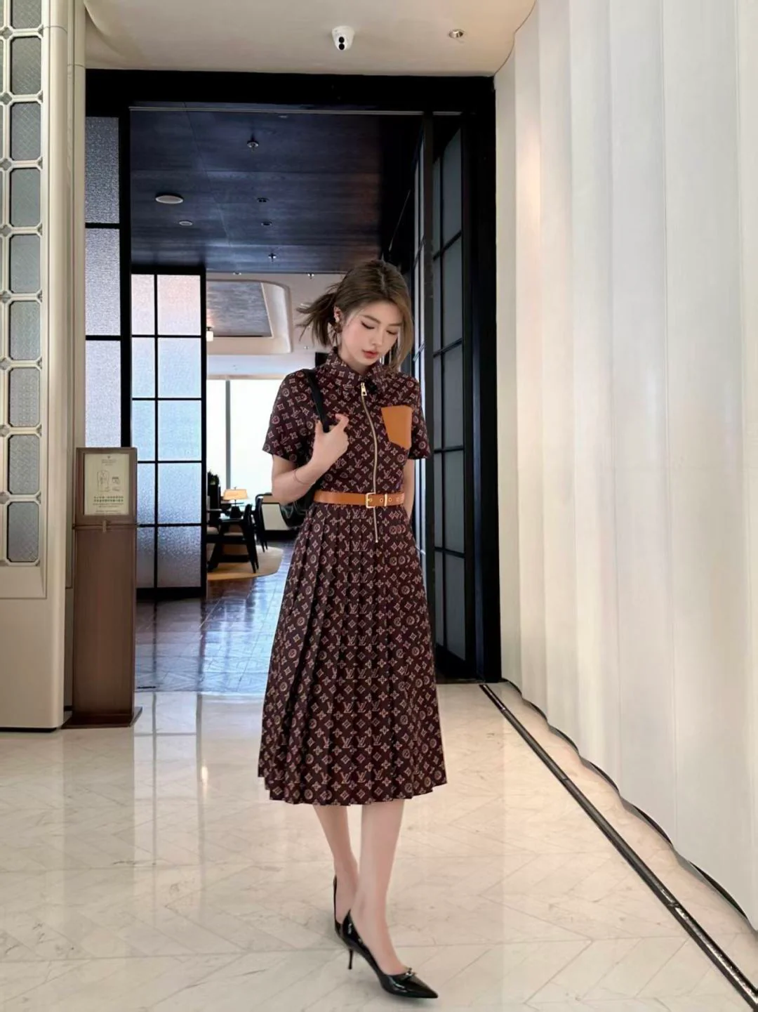 Pleated, fitted waist vest dress