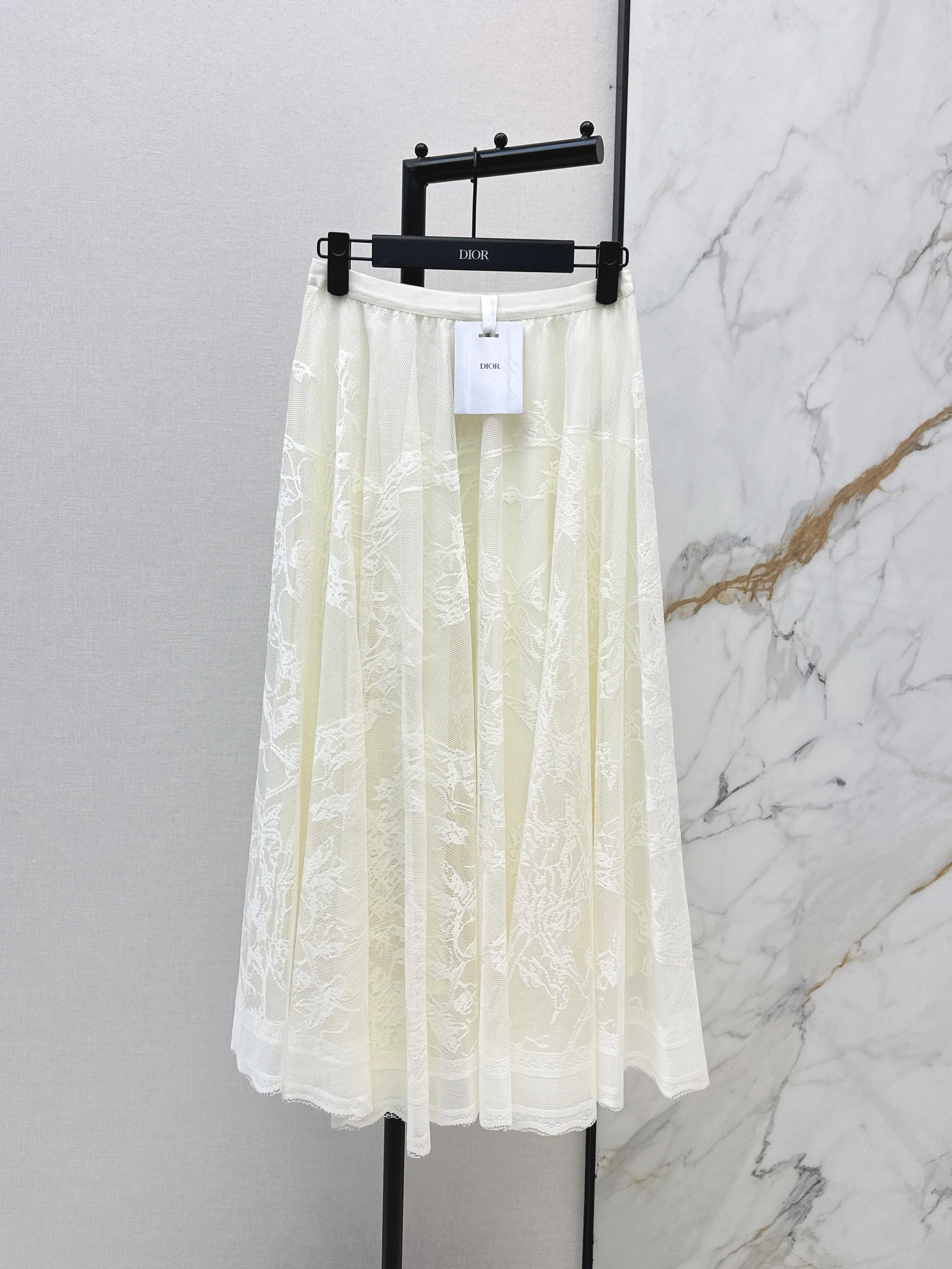High-waisted lace midi skirt