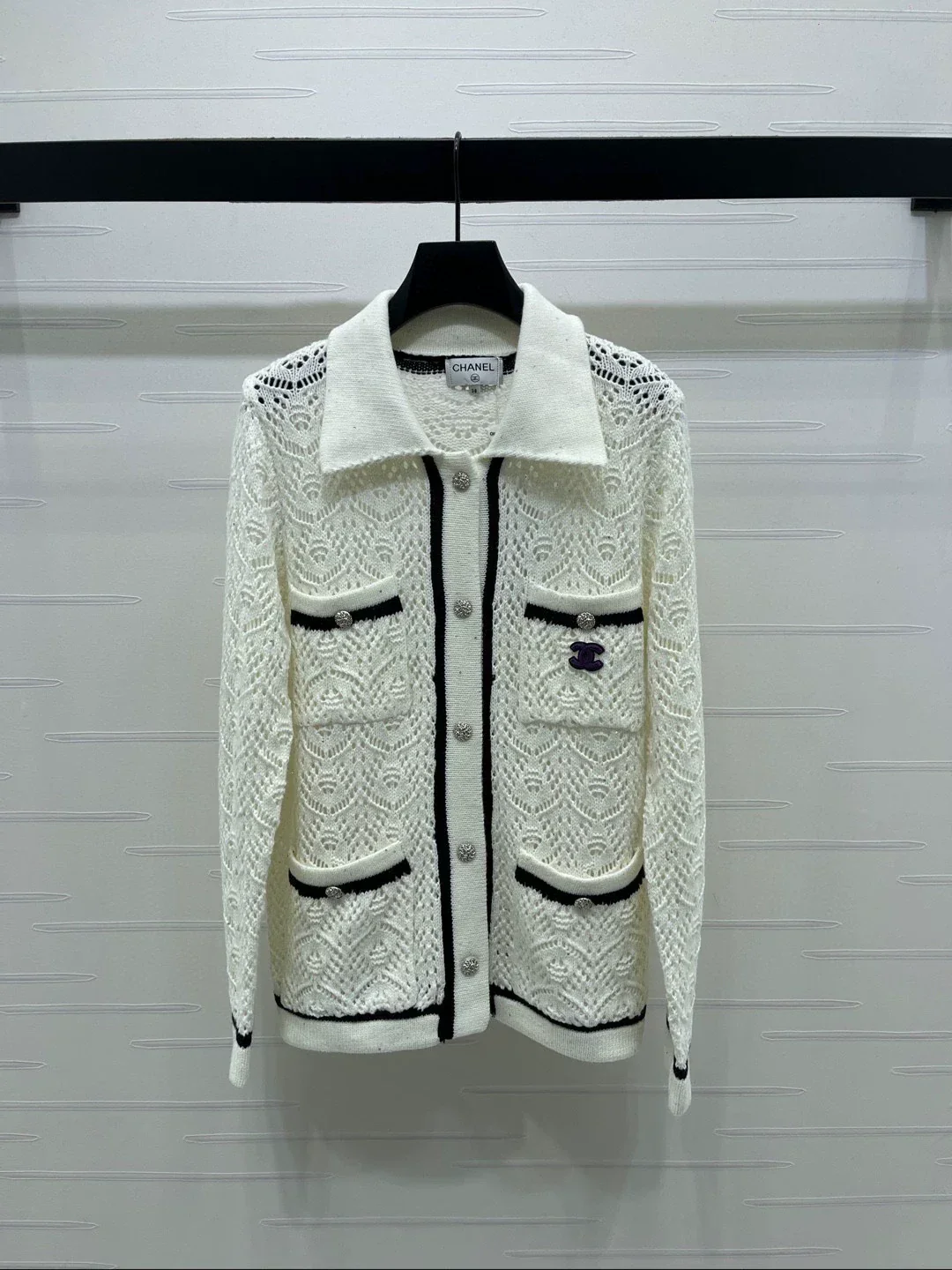 Collared Openwork Cardigan