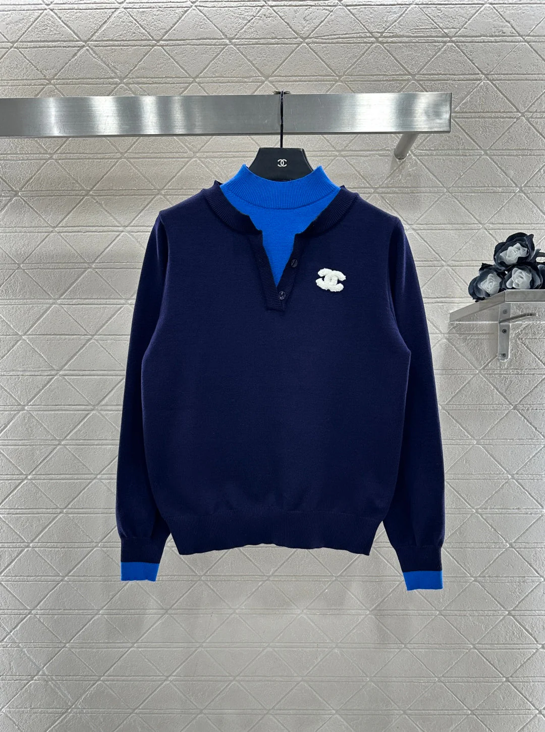 Color-blocked faux two-piece sweater
