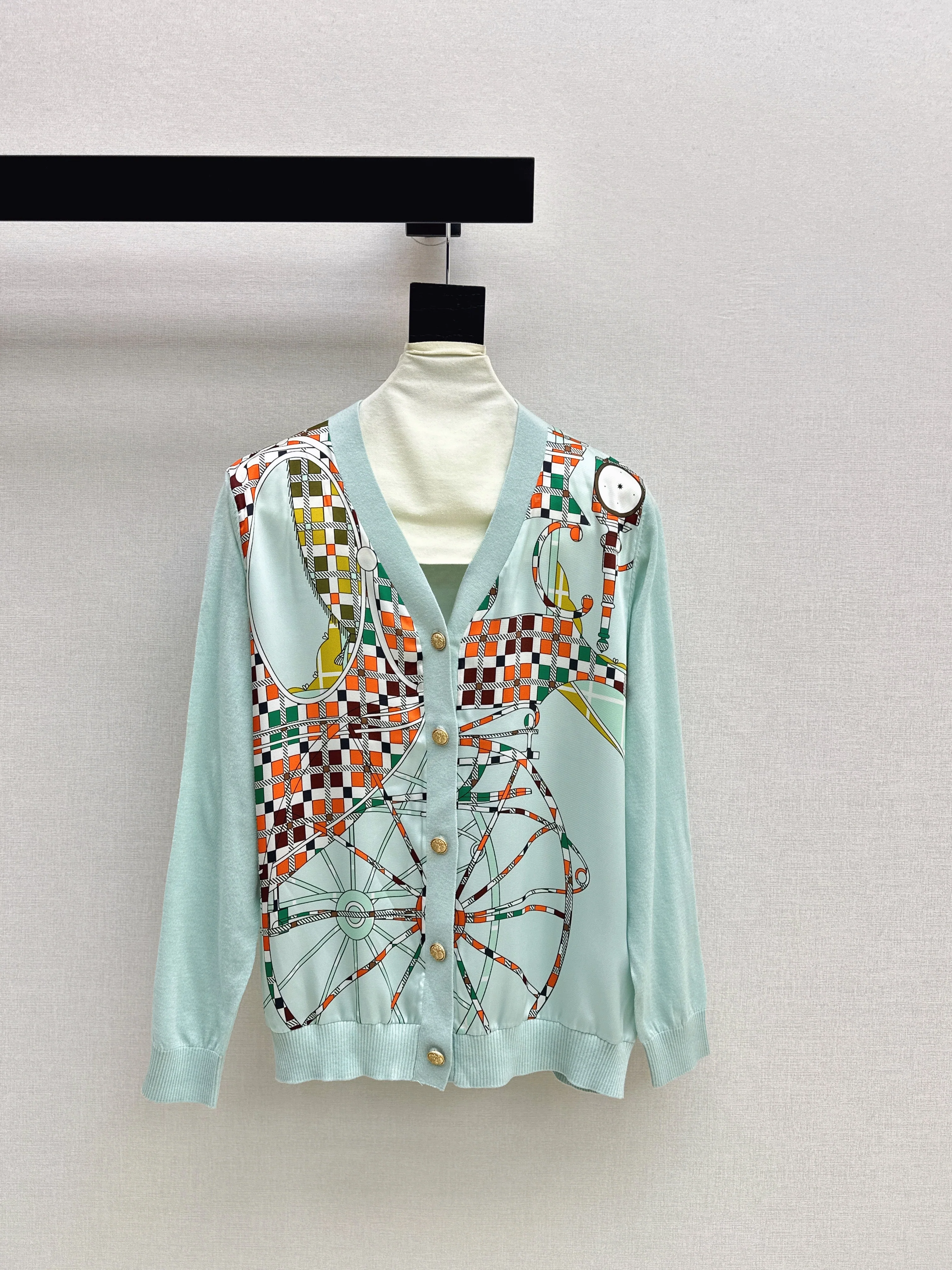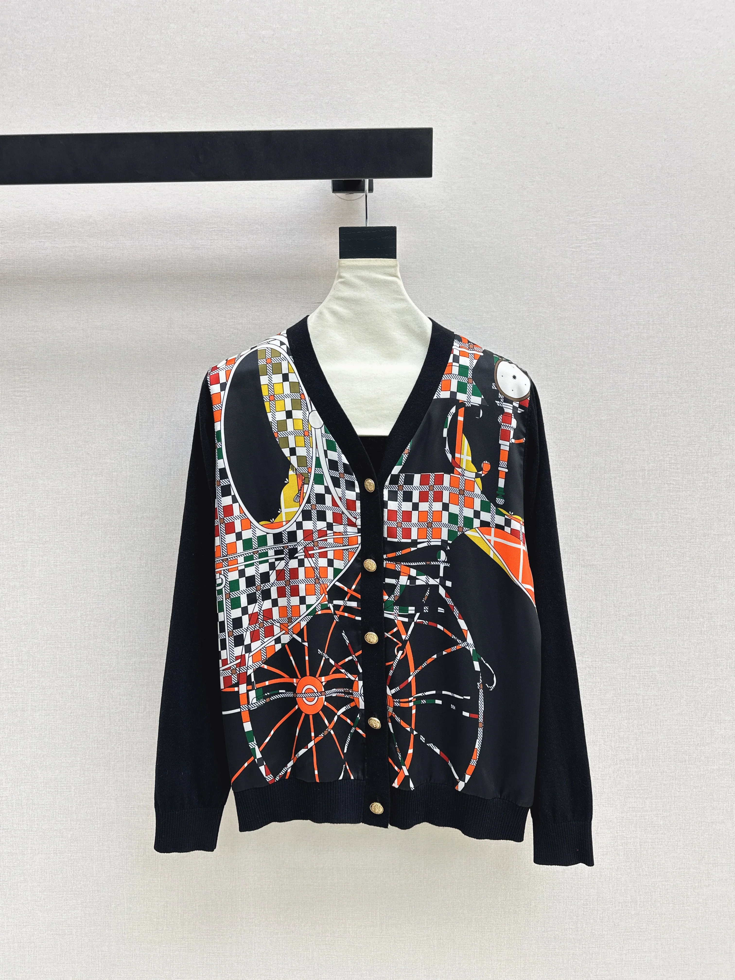 Patterned patchwork knit cardigan