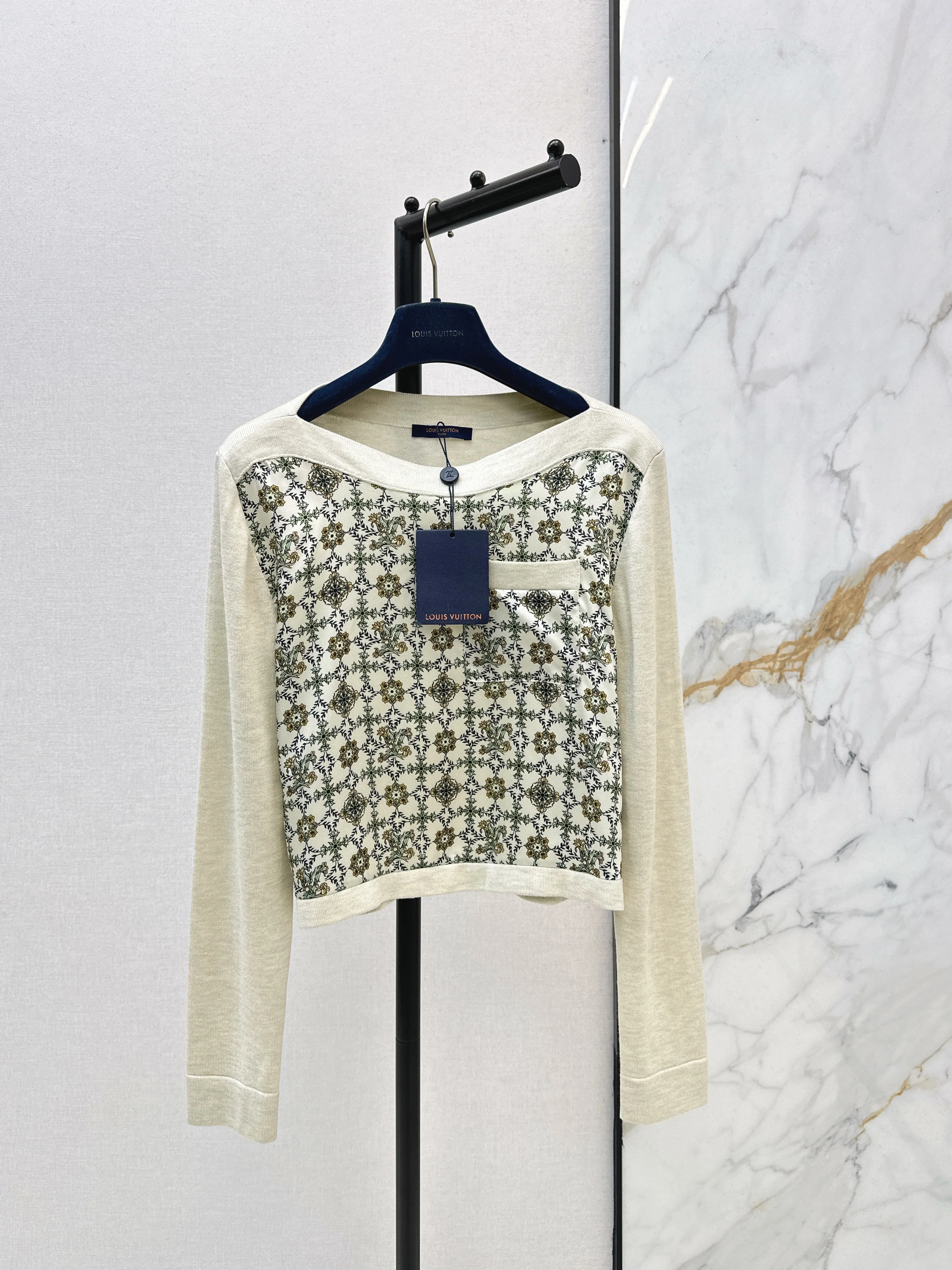 Patterned patchwork knit sweater