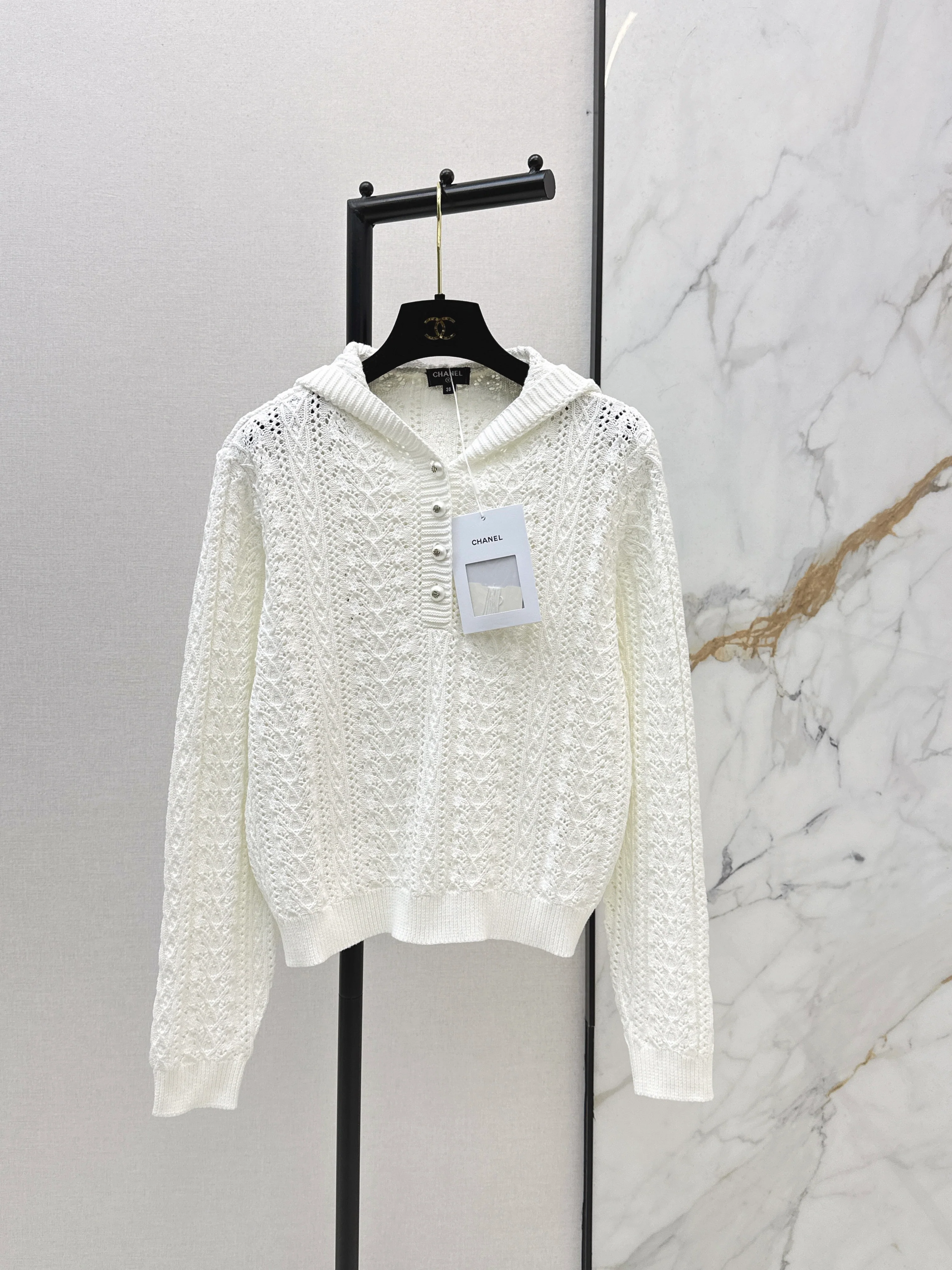 Openwork Hooded Knit Sweater