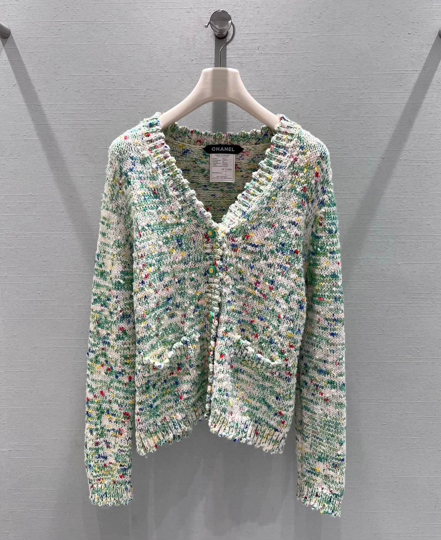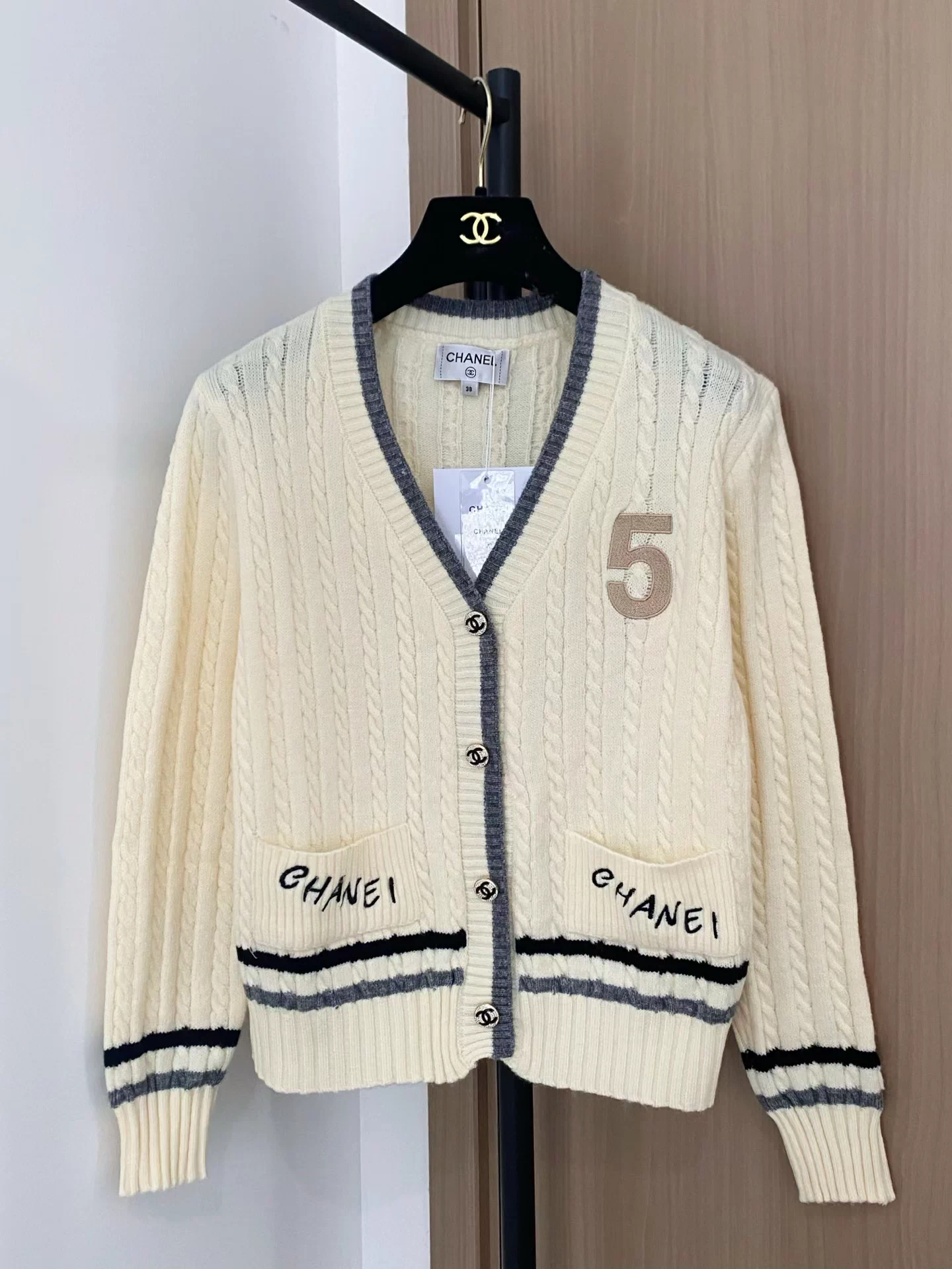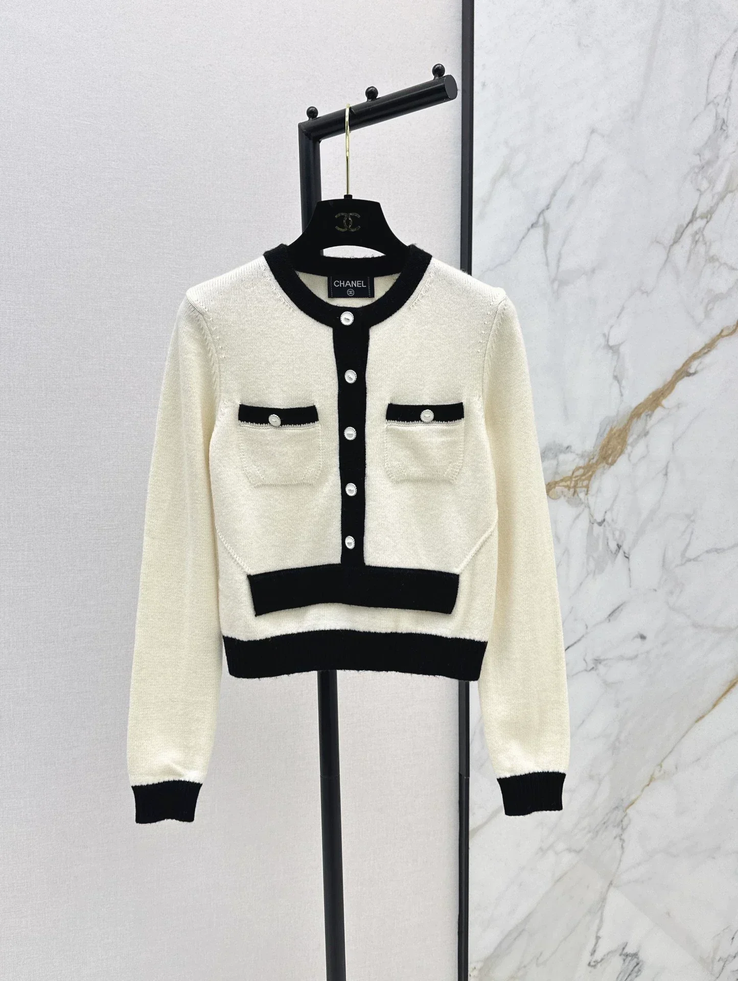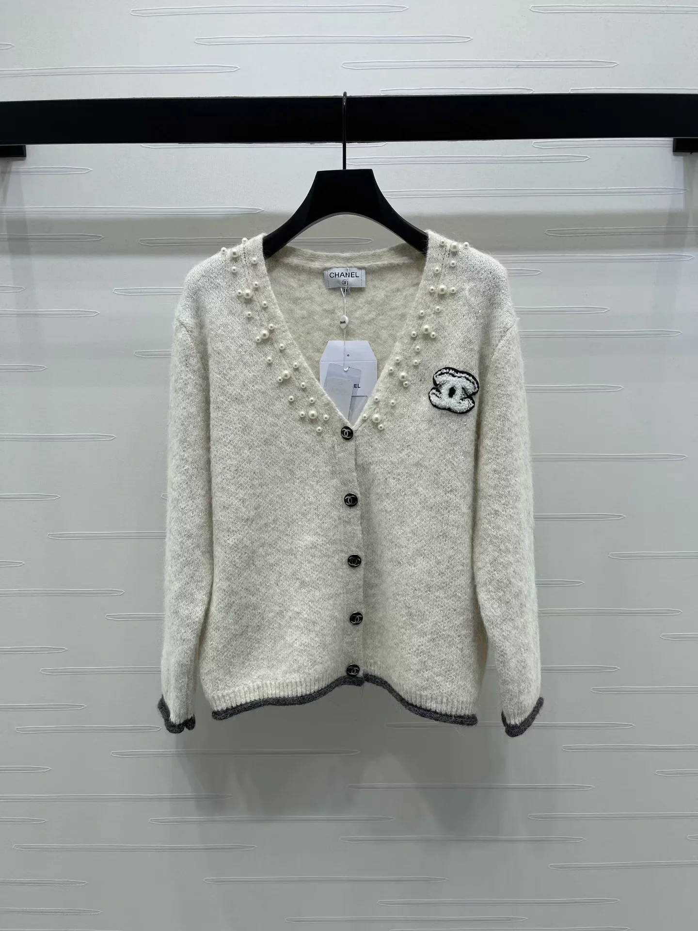 25fw V-neck pearl knitted cardigan