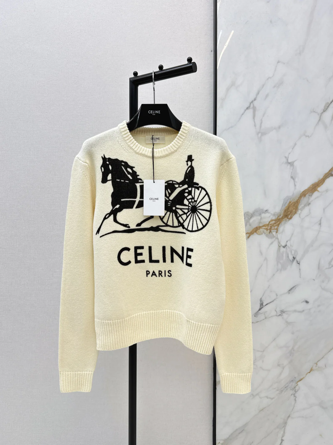 Carriage Pattern Cream Sweater