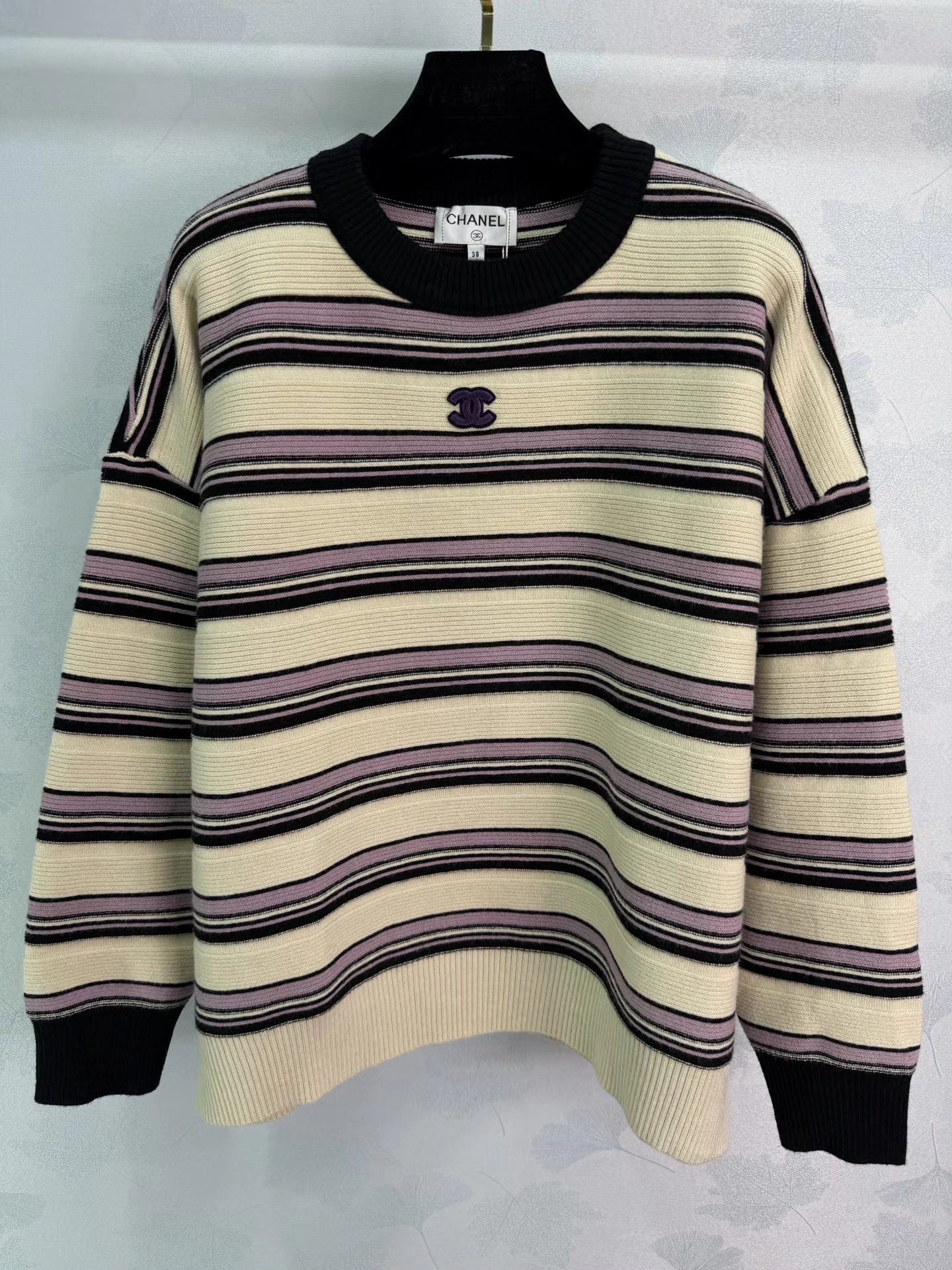 Color-blocked striped knit sweater