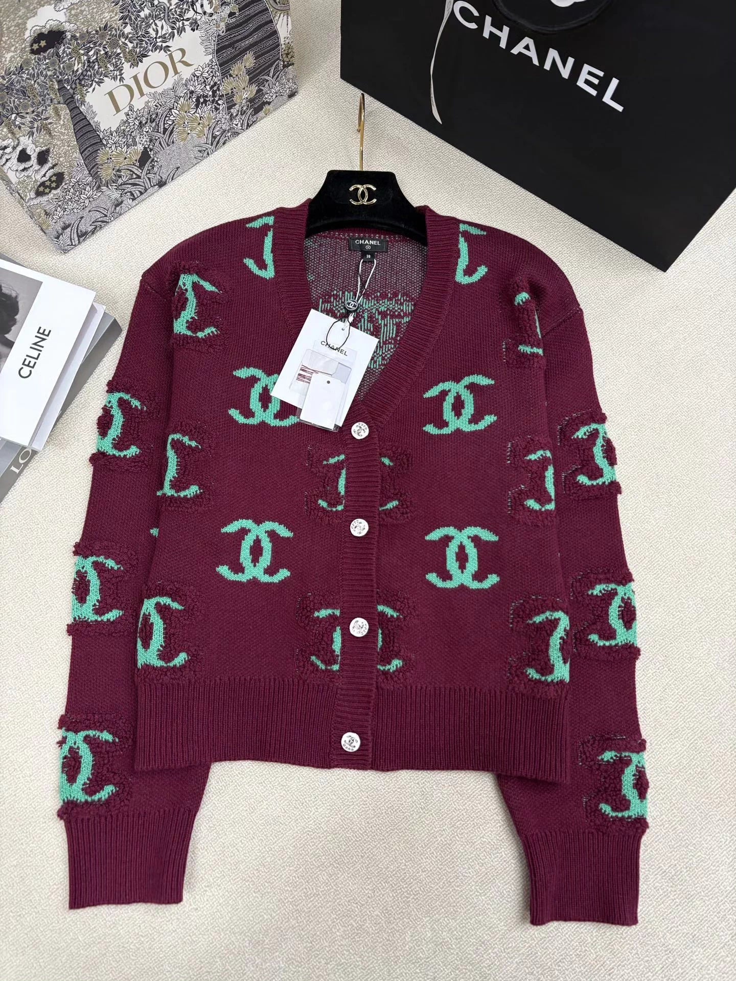 Letter jacquard knit cardigan