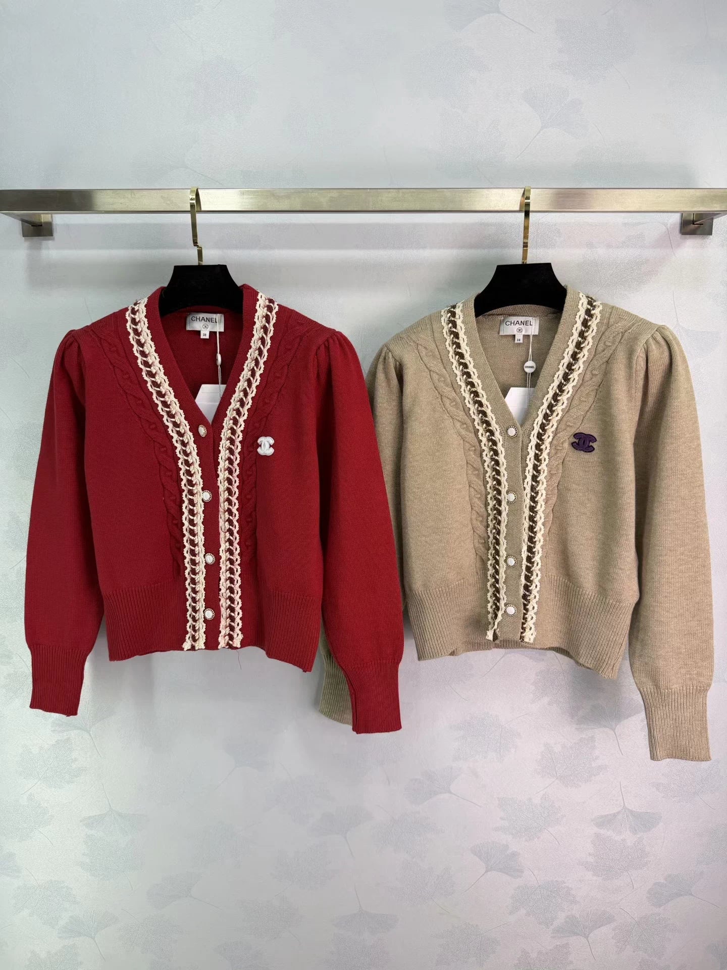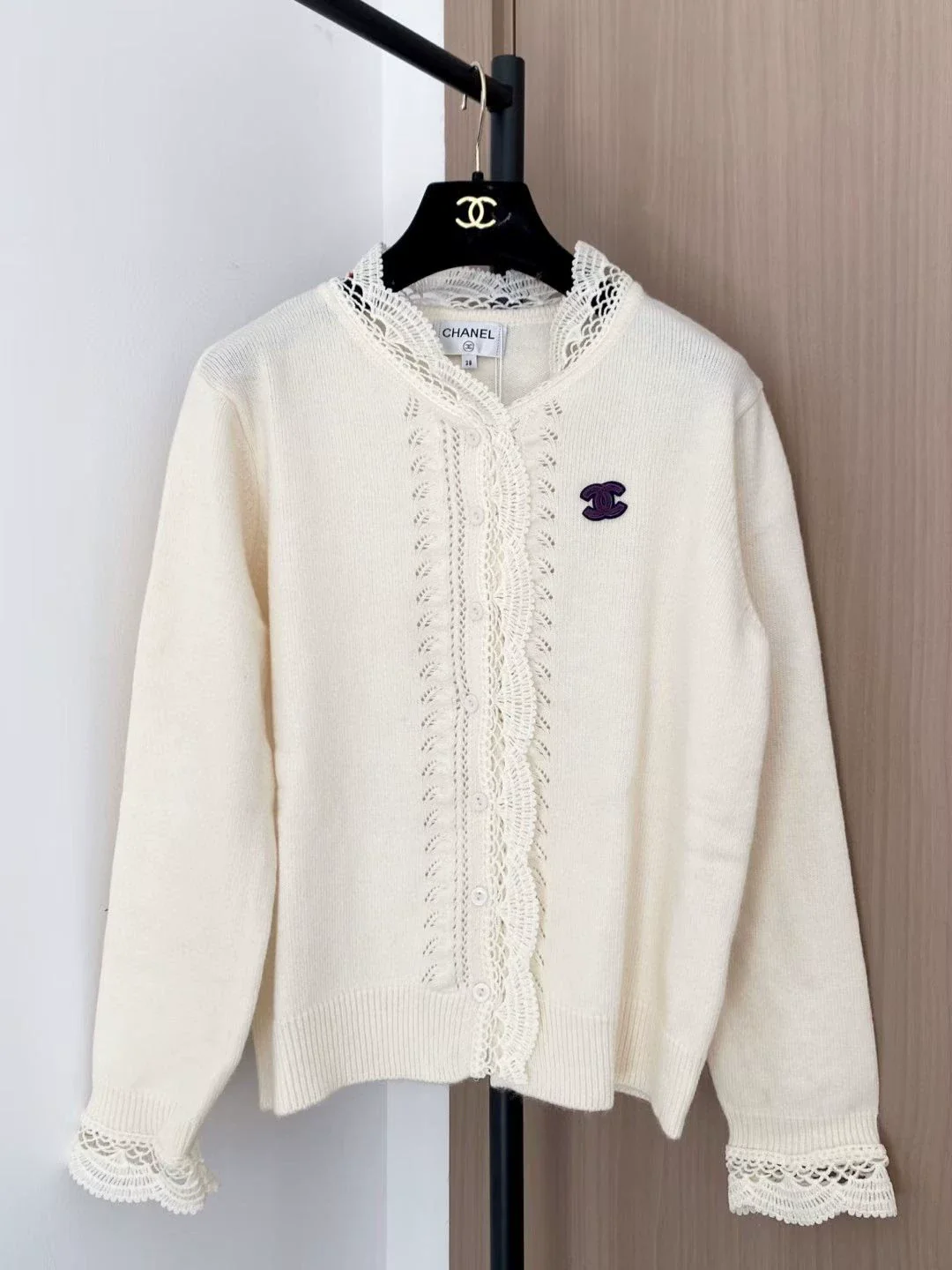 Lace-trimmed knit cardigan
