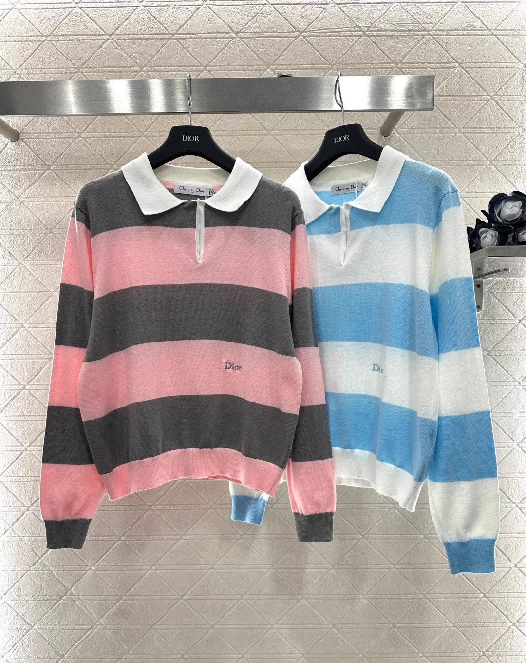 Striped Knit Polo Long Sleeve