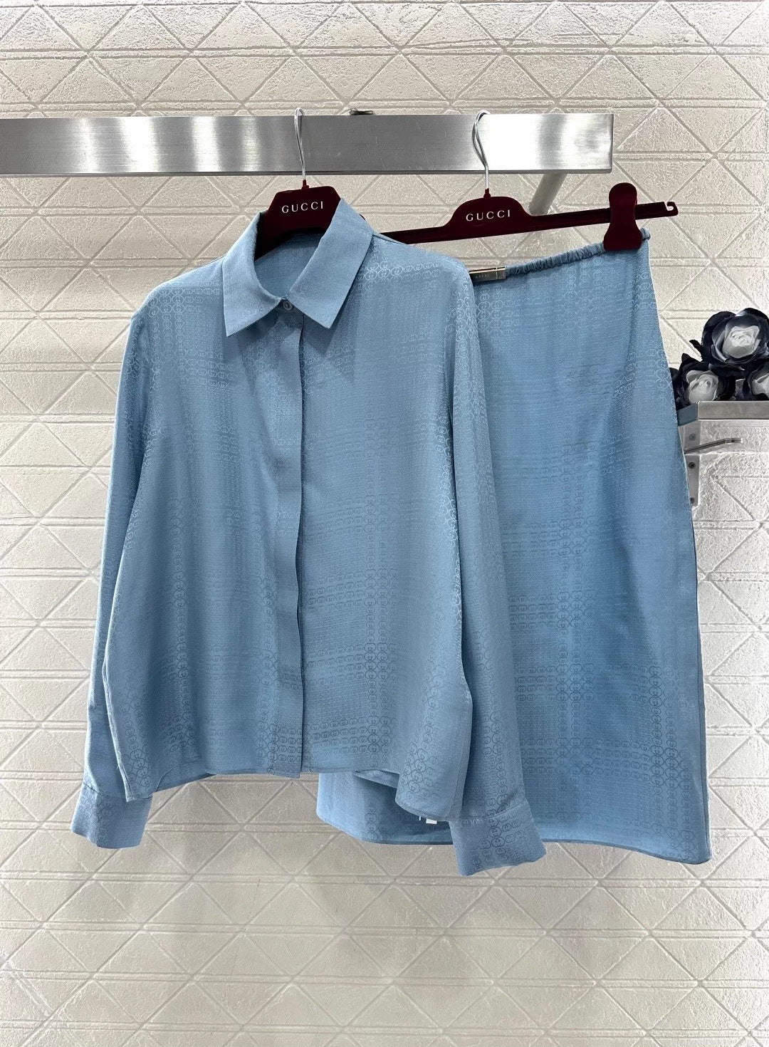 Jacquard Silk Blouse and Skirt Set