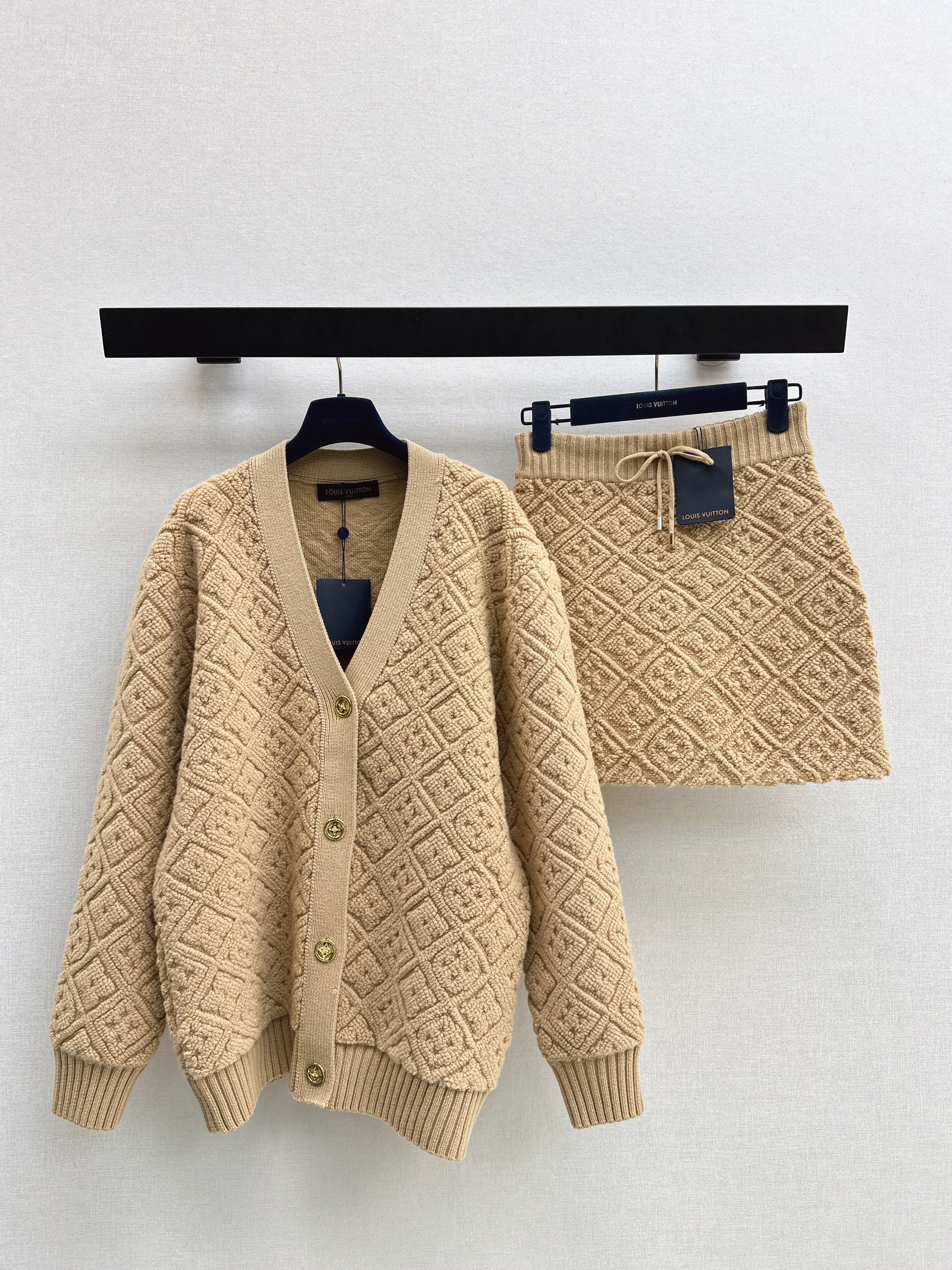 Embossed pattern cardigan/Skirt