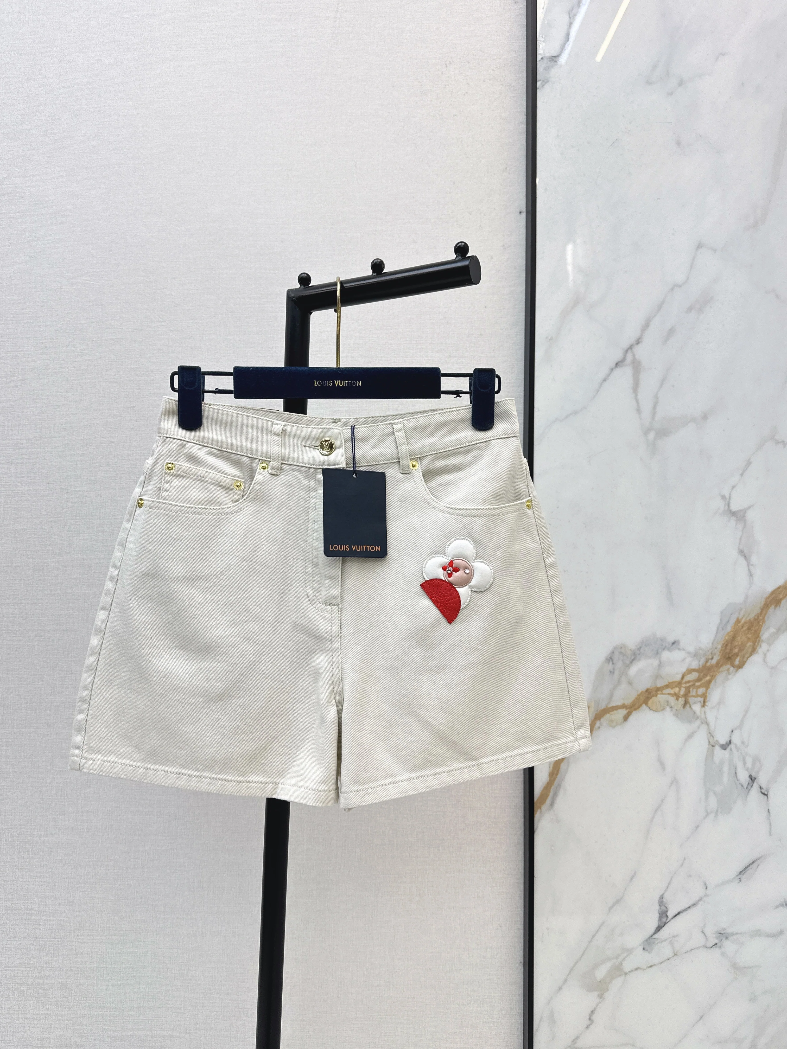 Embroidered denim shorts