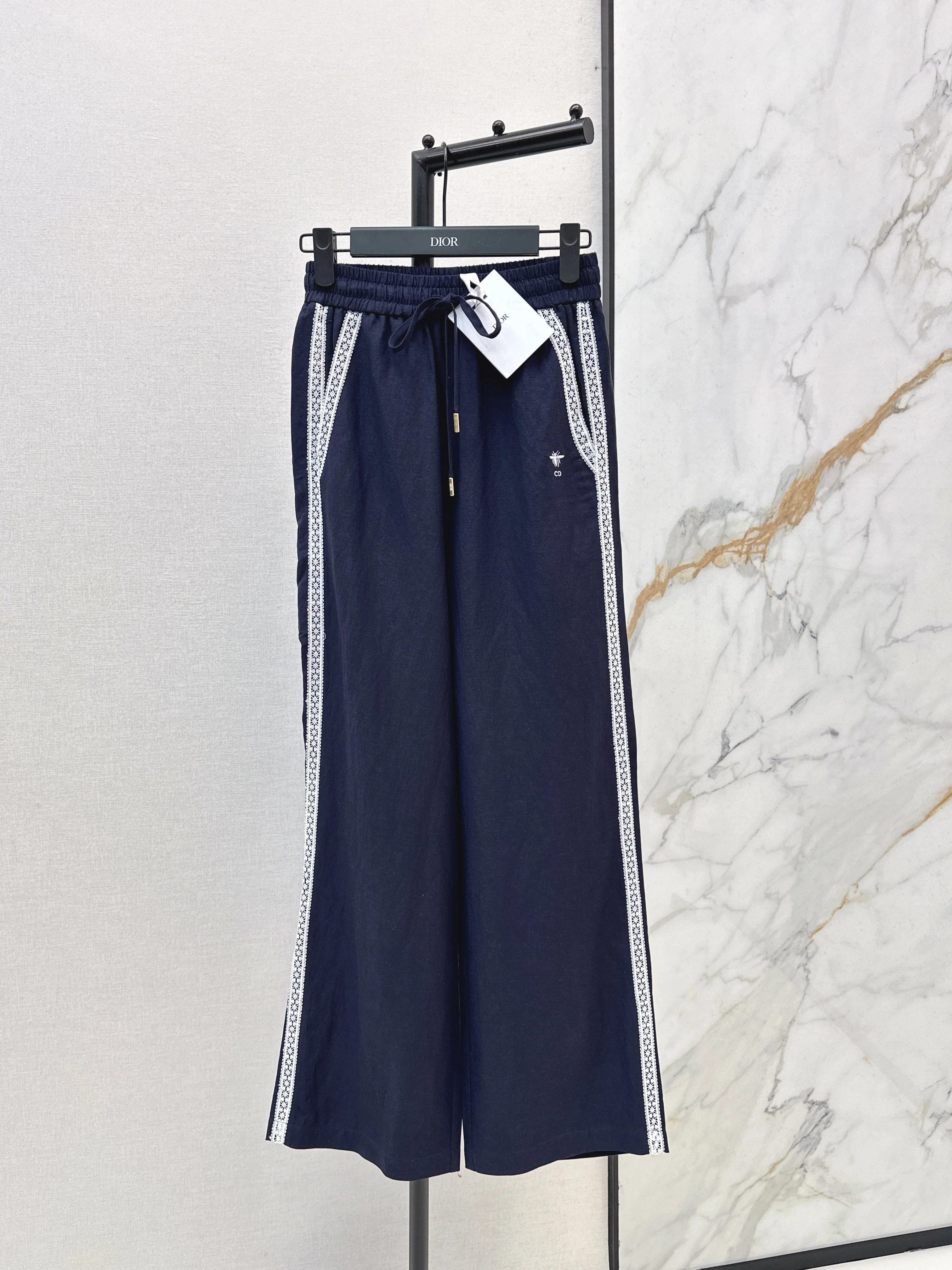 Lace-trimmed straight-leg trousers