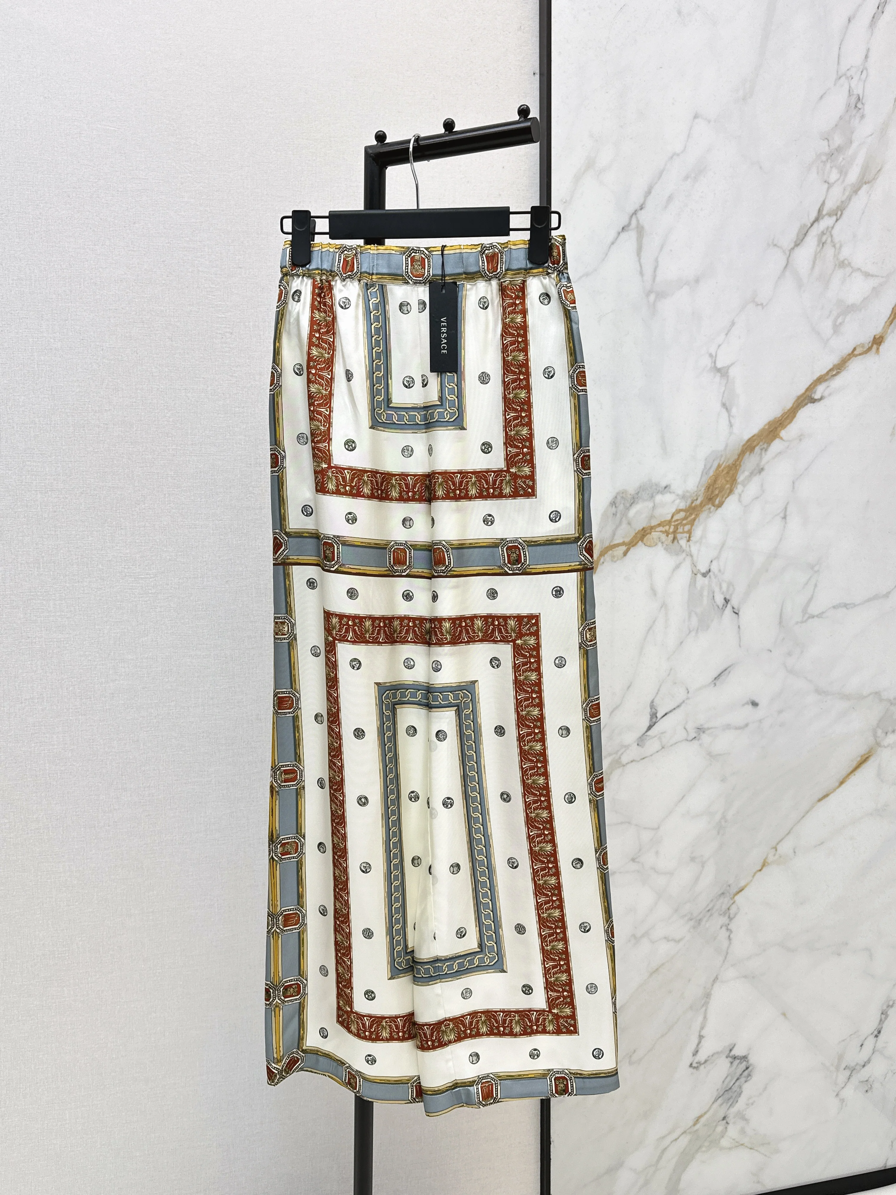 Printed Silk Straight Leg Pants