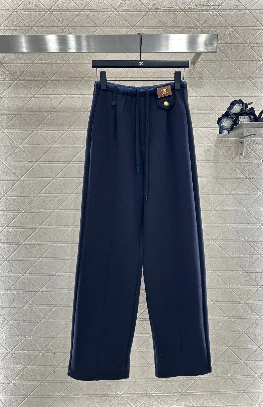 Fleece Drawstring Leather Tag Pants