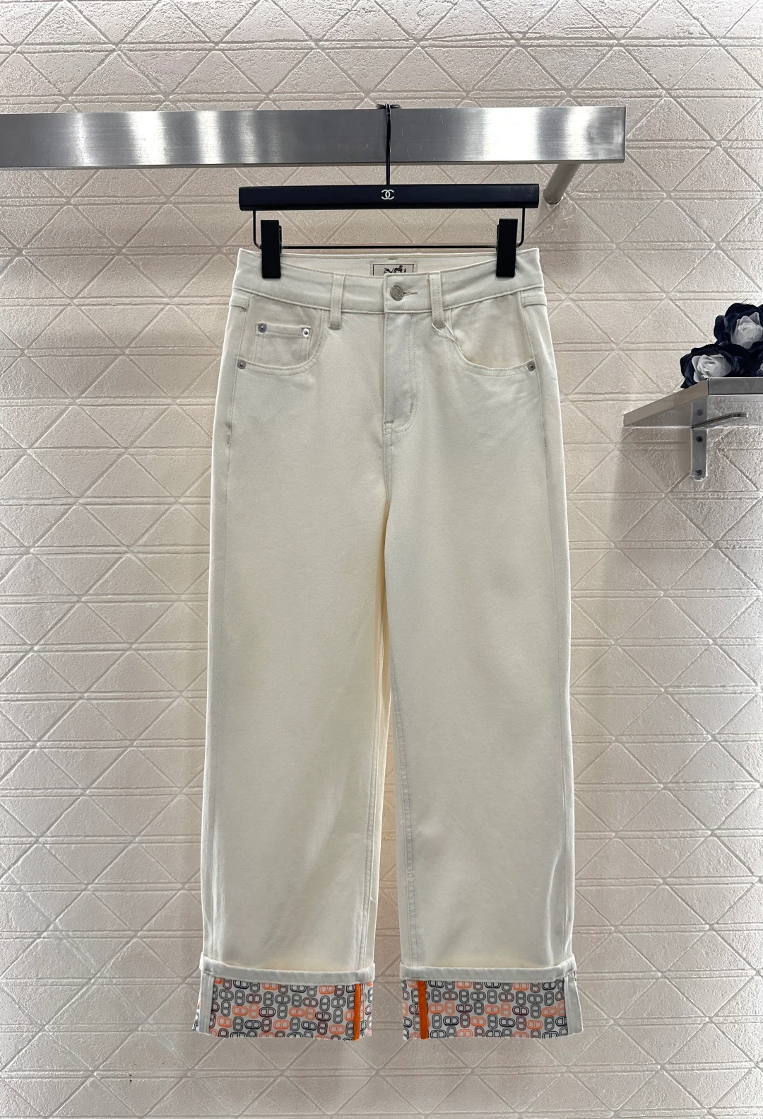 Nail bead denim straight leg pants