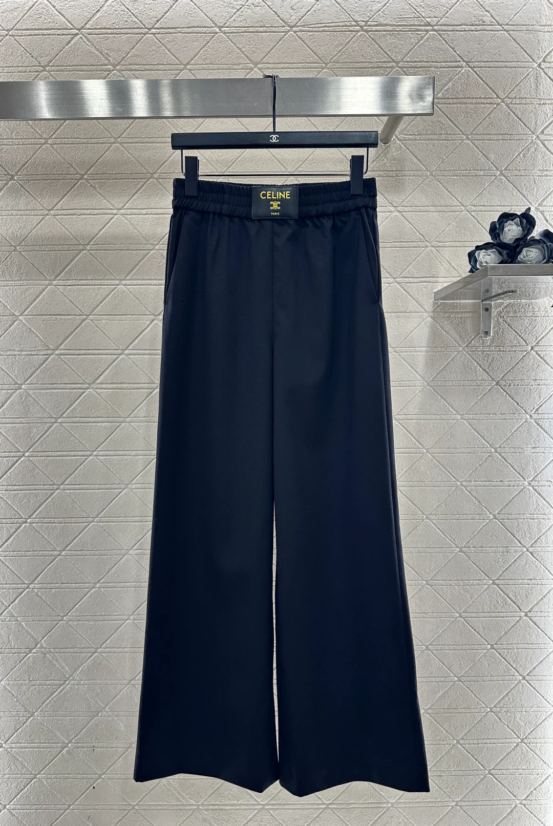 Chain pocket flared trousers