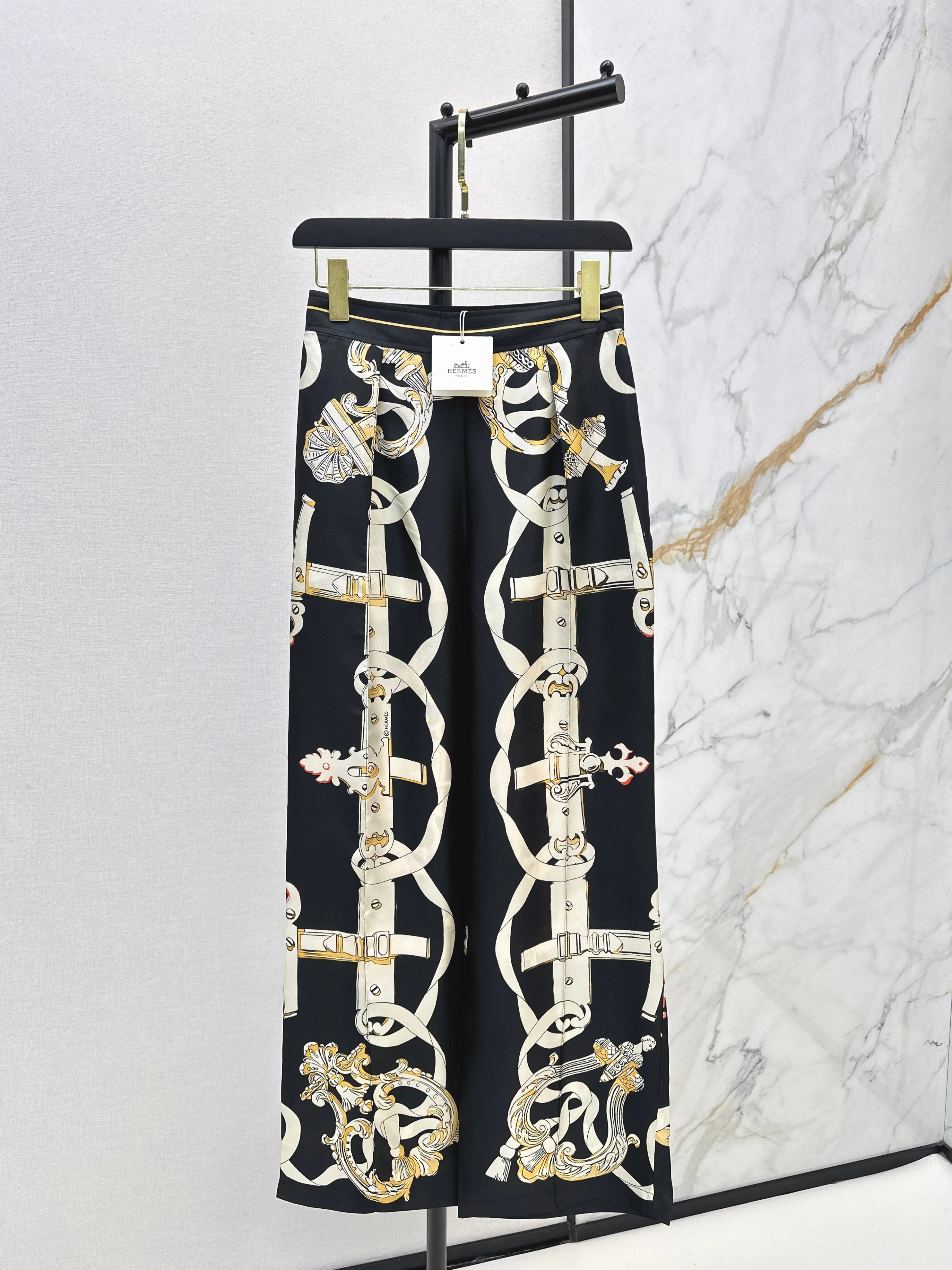 Printed Silk Straight Leg Pants
