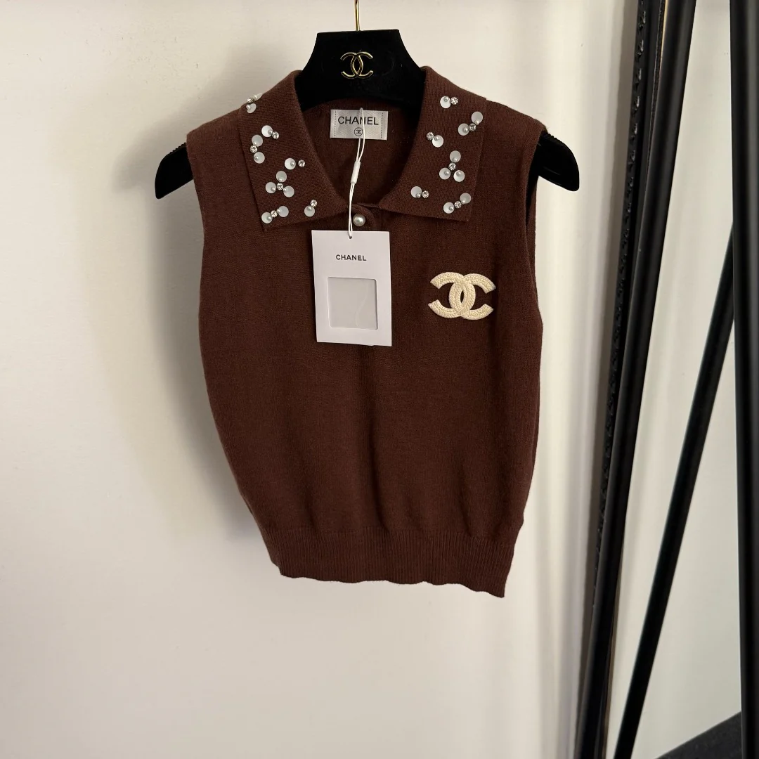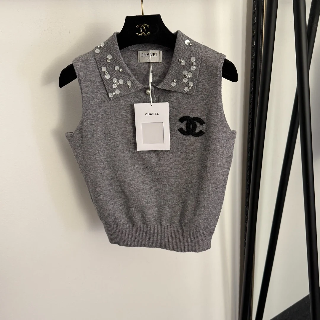 Rhinestone-embellished knit vest