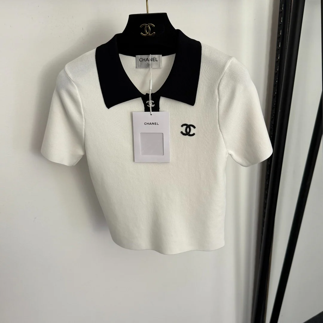 Polo collar short-sleeved top